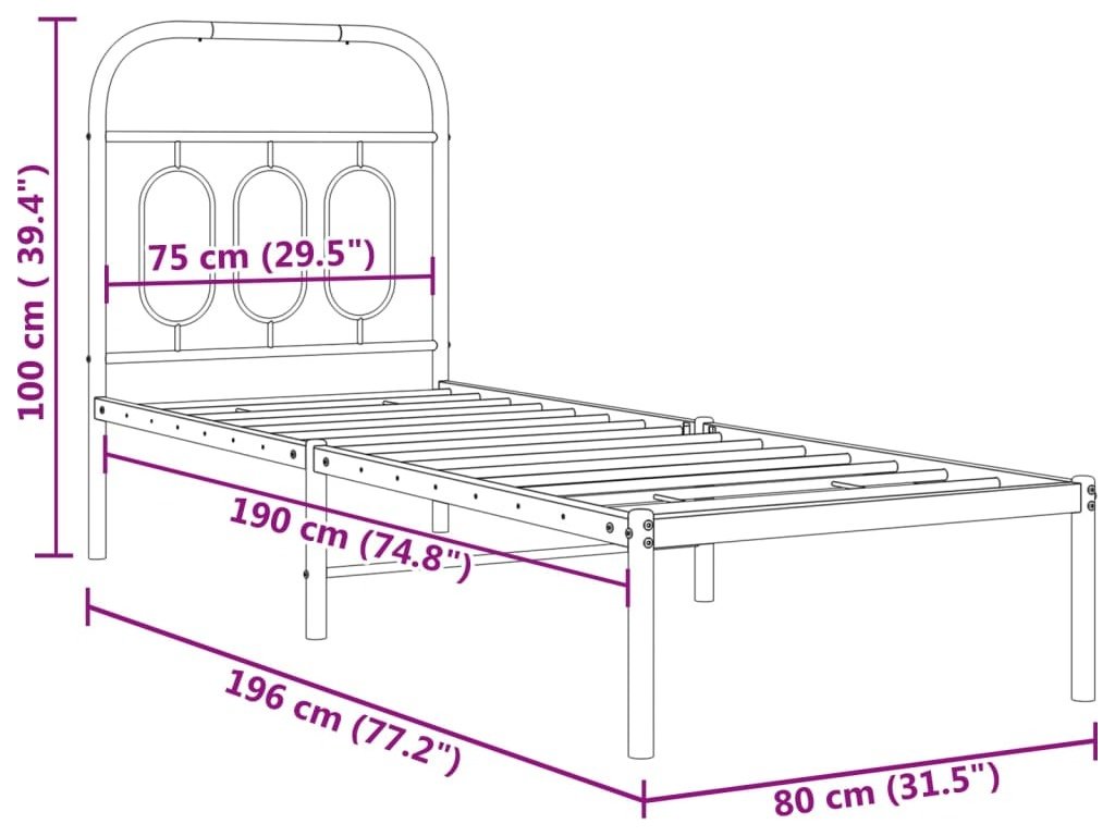 Kovový rám postele bez matrace s čelem 75 x 190 cm [377107]