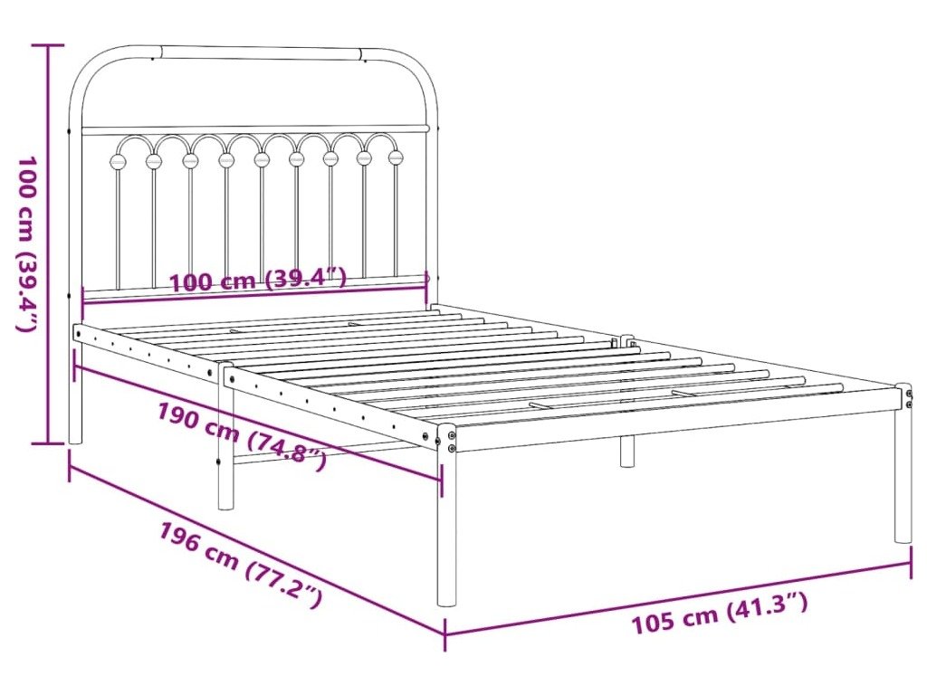 Kovový rám postele s čelem 100 x 190 cm [376594]