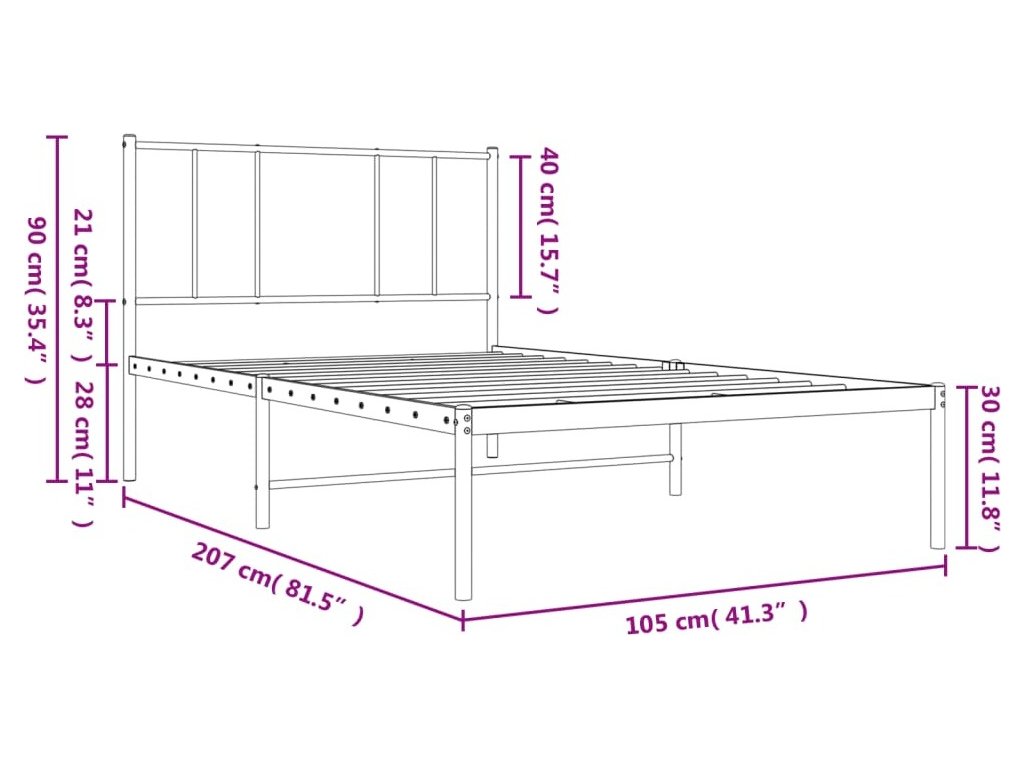 Kovový rám postele s čelem 100 x 200 cm [352524]