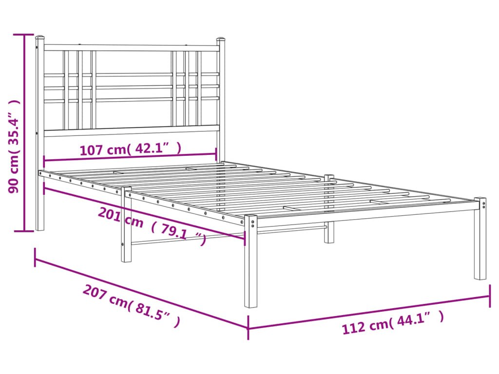 Kovový rám postele s čelem 107 x 203 cm [376369]