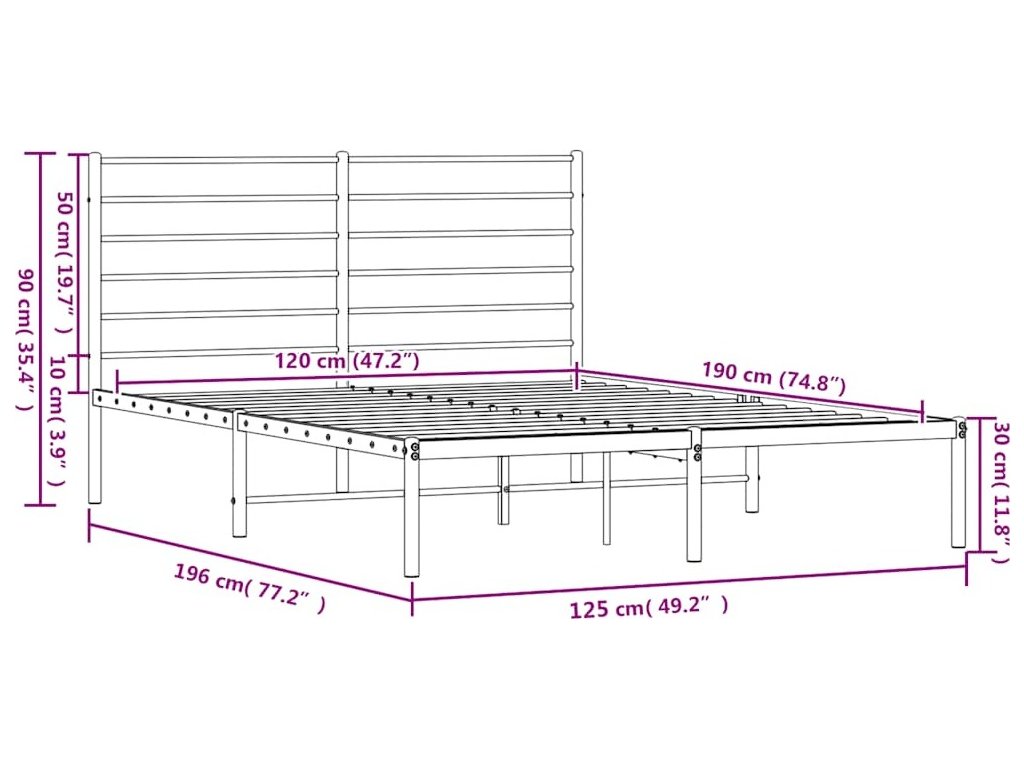 Kovový rám postele s čelem 120 x 190 cm [352365]