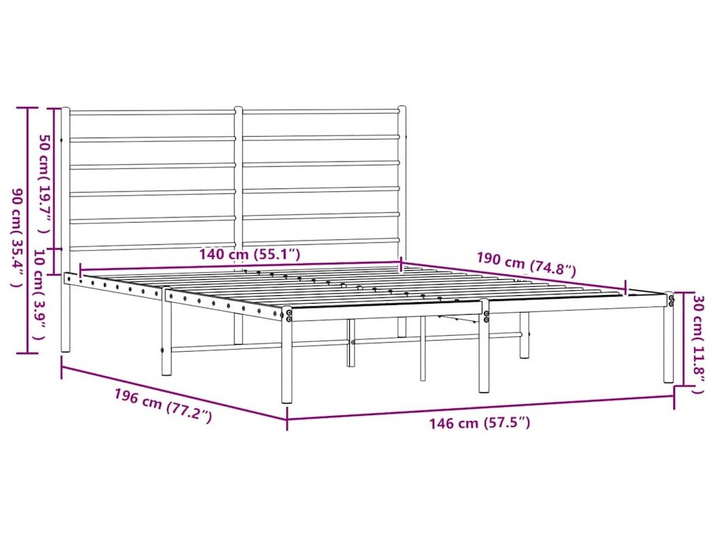 Kovový rám postele s čelem 140 x 190 cm [352319]