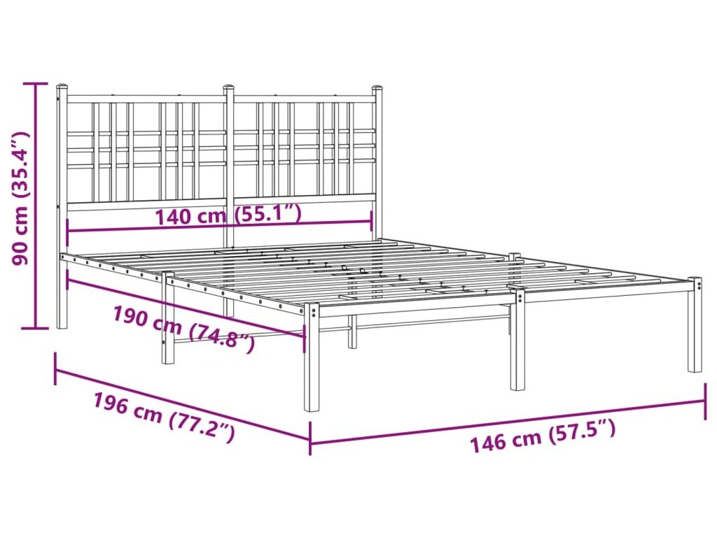 Kovový rám postele s čelem 140 x 190 cm [376373]