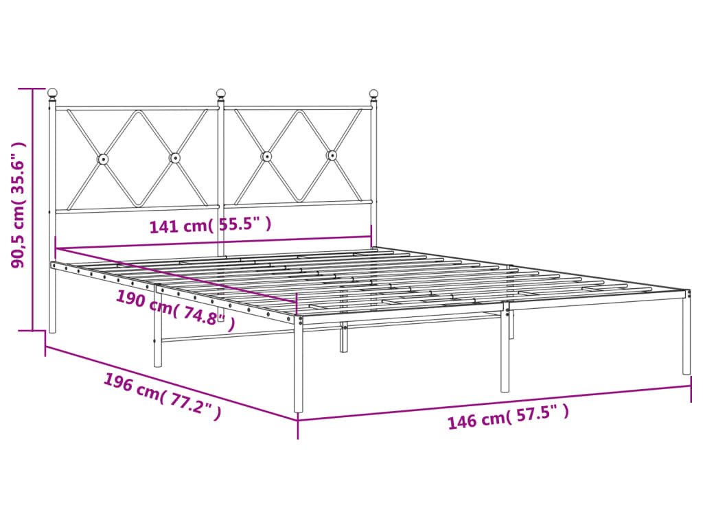 Kovový rám postele s čelem 140 x 190 cm [376502]