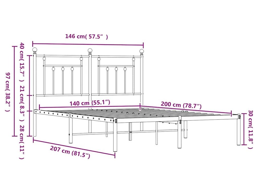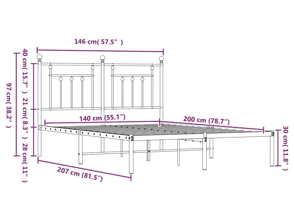 Kovový rám postele s čelem 140 x 200 cm [353538]