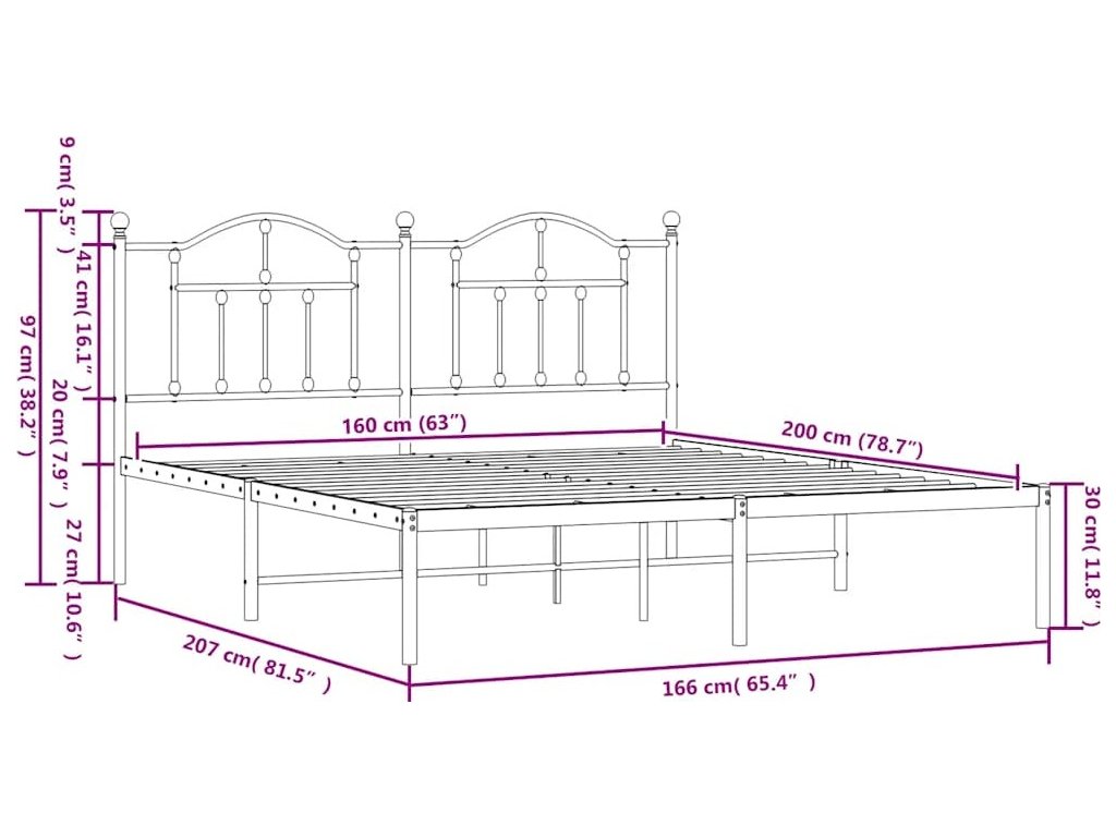Kovový rám postele s čelem 160 x 200 cm [353442]