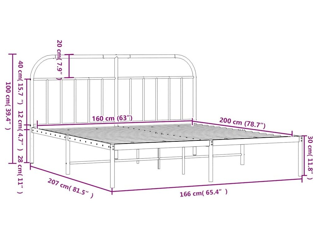 Kovový rám postele s čelem 160 x 200 cm [353687]