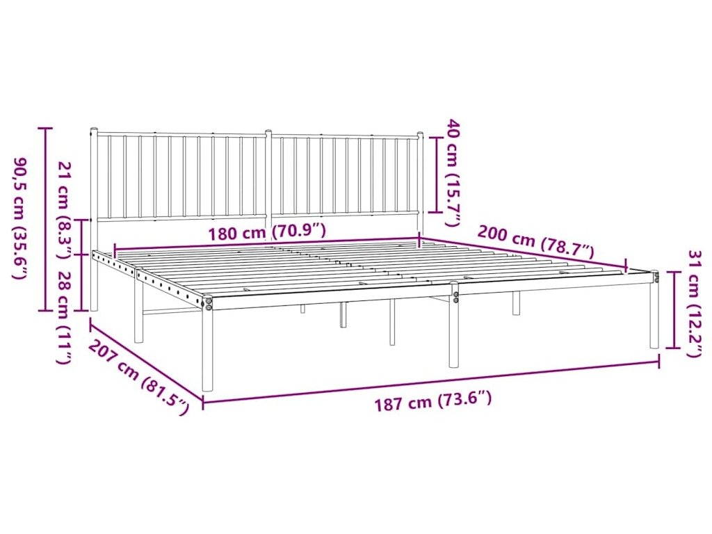 Kovový rám postele s čelem 180 x 200 cm [350935]