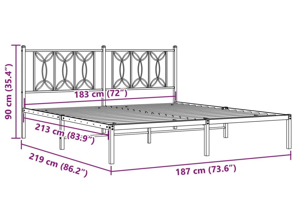 Kovový rám postele s čelem 183 x 213 cm [376182]
