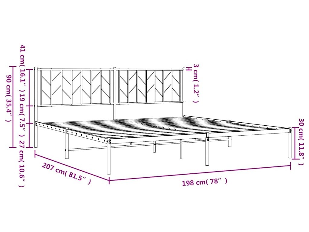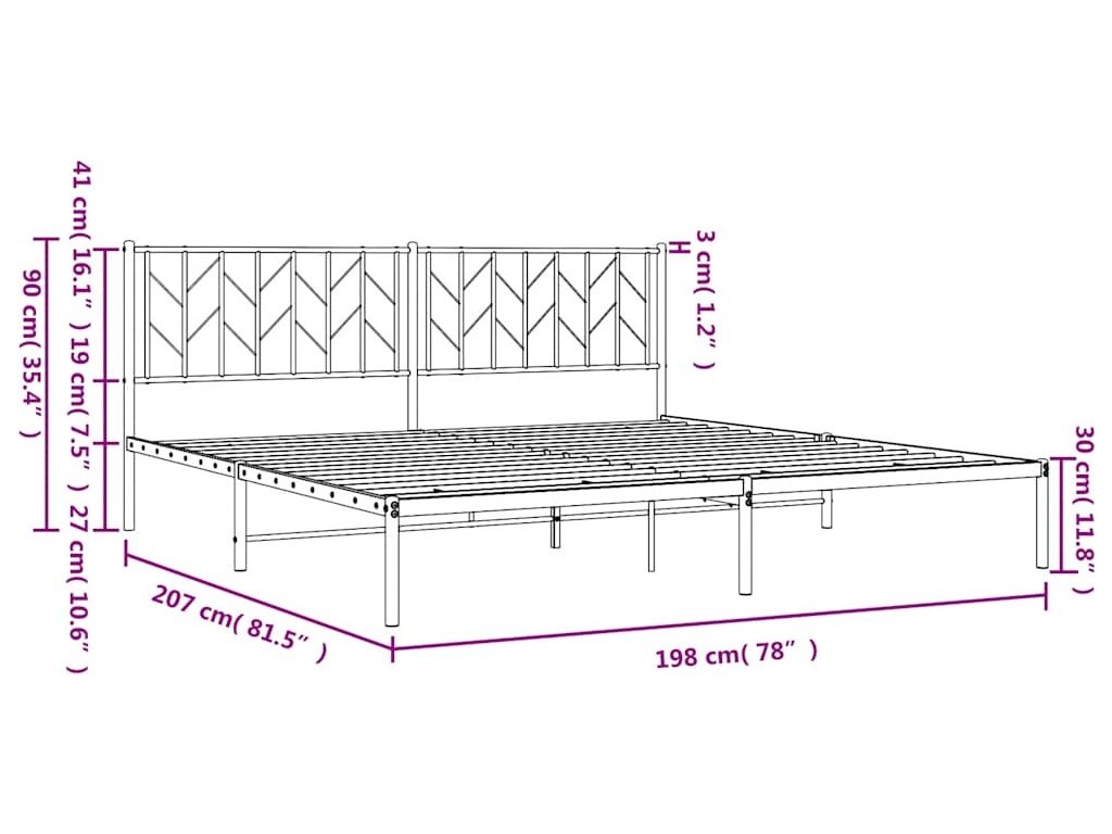 Kovový rám postele s čelem 193 x 203 cm [374443]