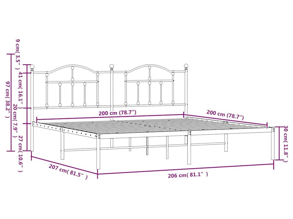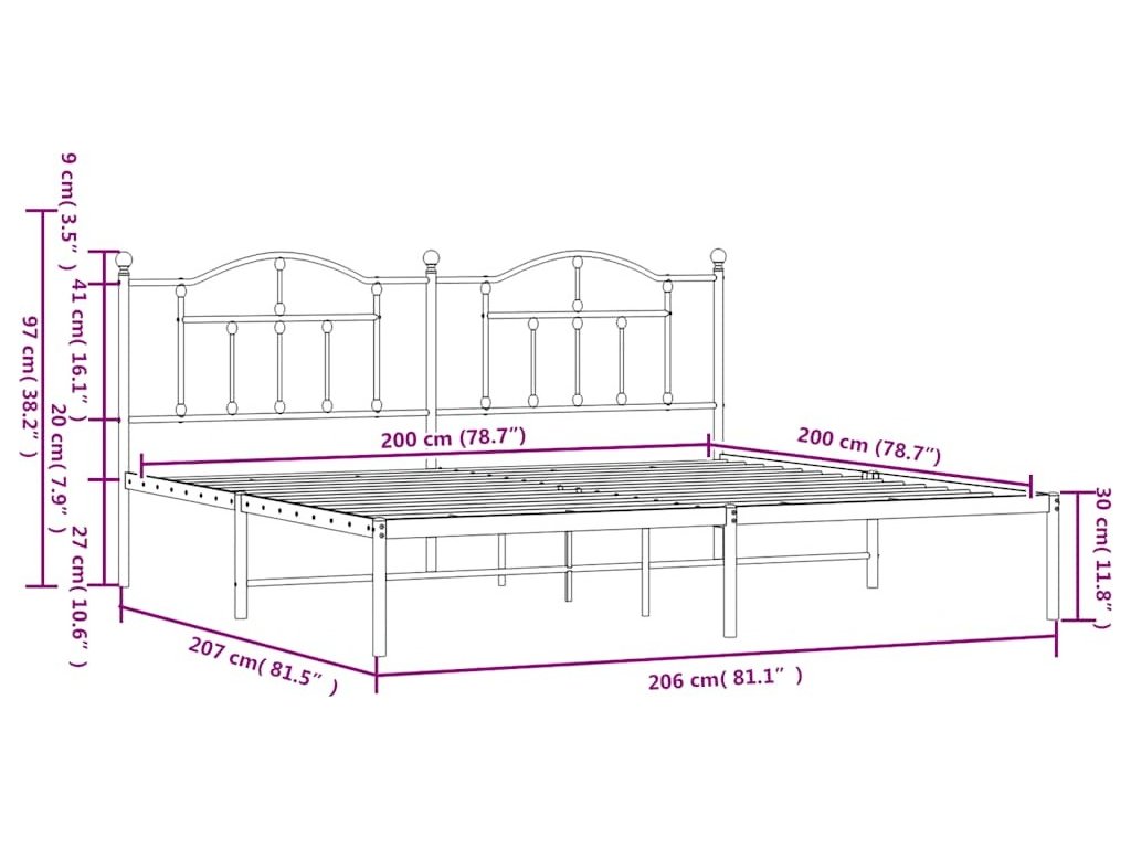 Kovový rám postele s čelem 200 x 200 cm [353446]
