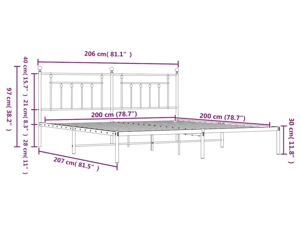 Kovový rám postele s čelem 200 x 200 cm [353544]