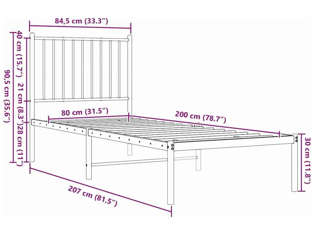 Kovový rám postele s čelem 80 x 200 cm [350855]
