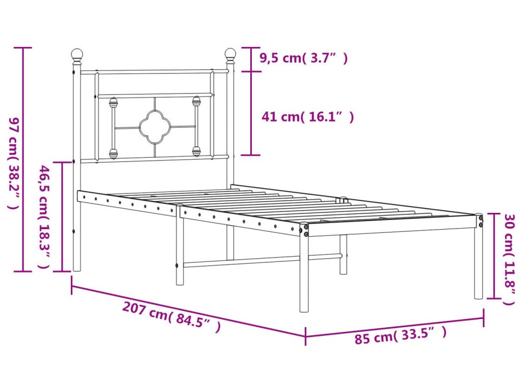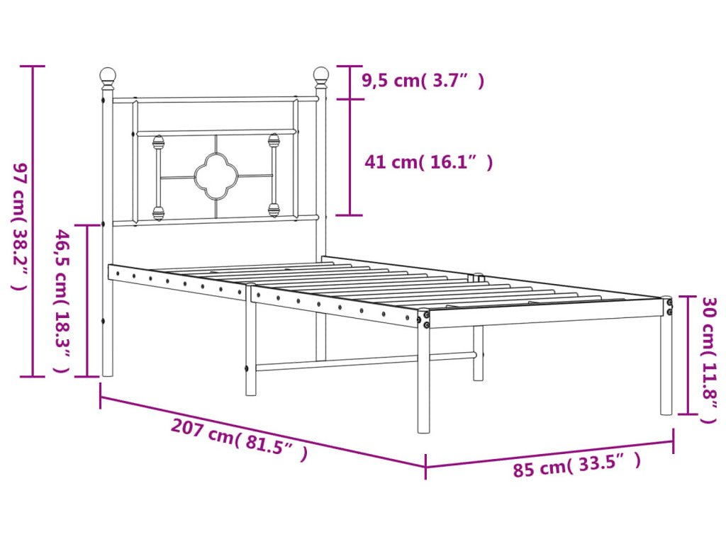 Kovový rám postele s čelem 80 x 200 cm [374379]