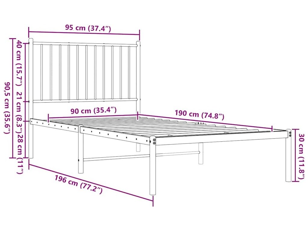 Kovový rám postele s čelem 90 x 190 cm [350923]