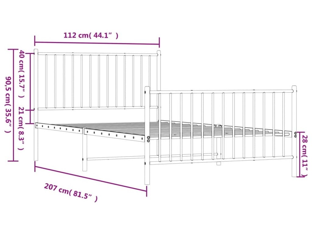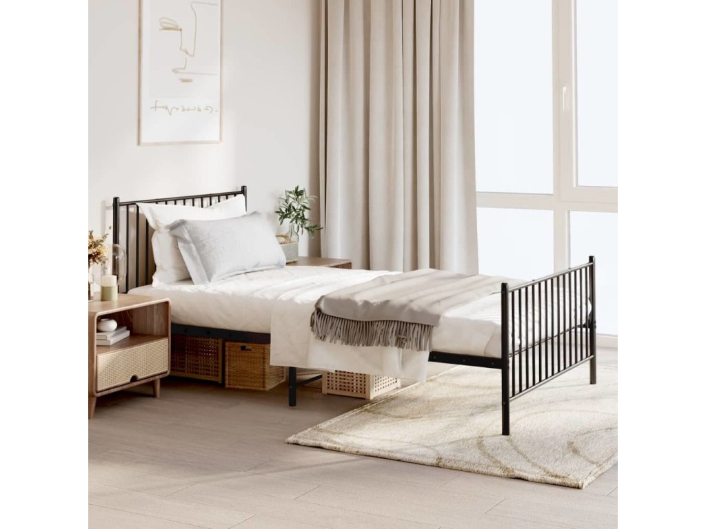 Kovový rám postele s hlavovým a nožním čelem 107 x 203 cm [350945]