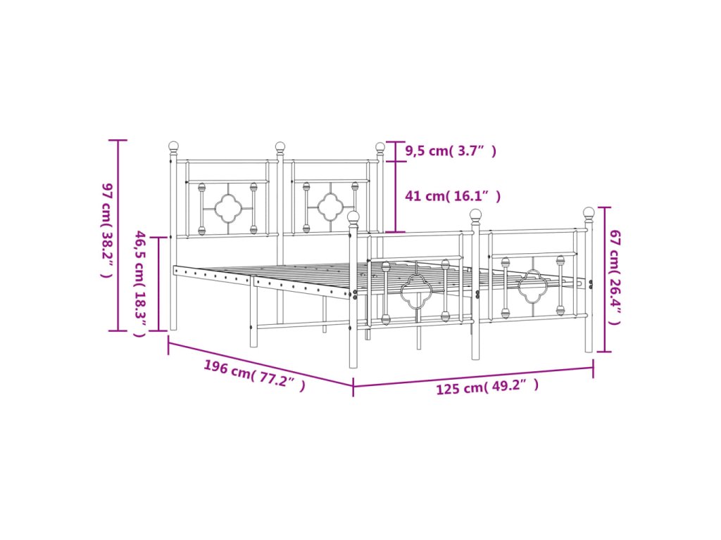 Kovový rám postele s hlavovým a nožním čelem 120 x 190 cm [374403]