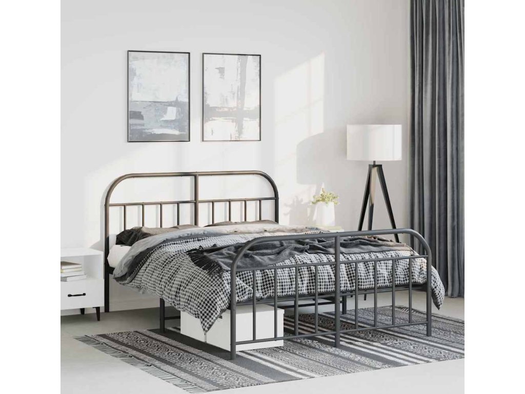 Kovový rám postele s hlavovým a nožním čelem 135 x 190 cm [353652]