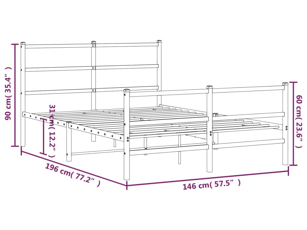 Kovový rám postele s hlavovým a nožním čelem 140 x 190 cm [355383]