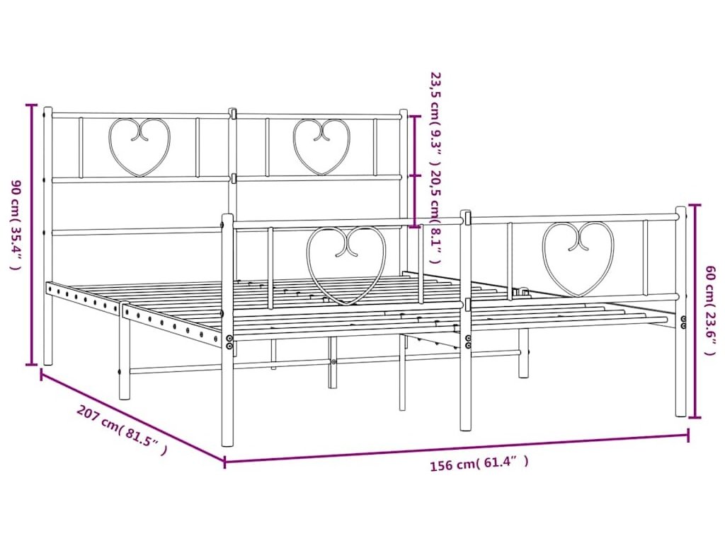 Kovový rám postele s hlavovým a nožním čelem 150 x 200 cm [355483]