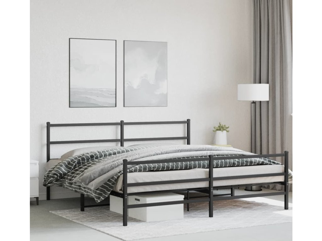 Kovový rám postele s hlavovým a nožním čelem 183 x 213 cm [355388]
