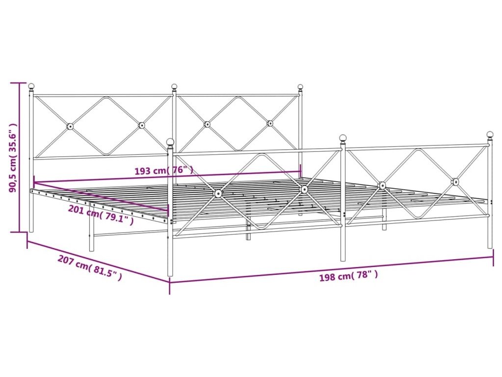 Kovový rám postele s hlavovým a nožním čelem 193 x 203 cm [376526]