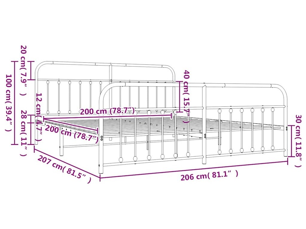 Kovový rám postele s hlavovým a nožním čelem 200 x 200 cm [352603]