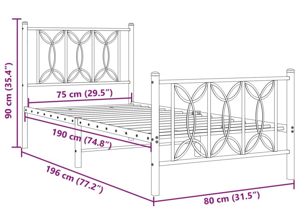 Kovový rám postele s hlavovým a nožním čelem 75 x 190 cm [376136]