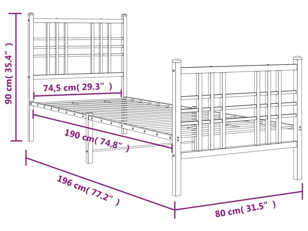 Kovový rám postele s hlavovým a nožním čelem 75 x 190 cm [376332]