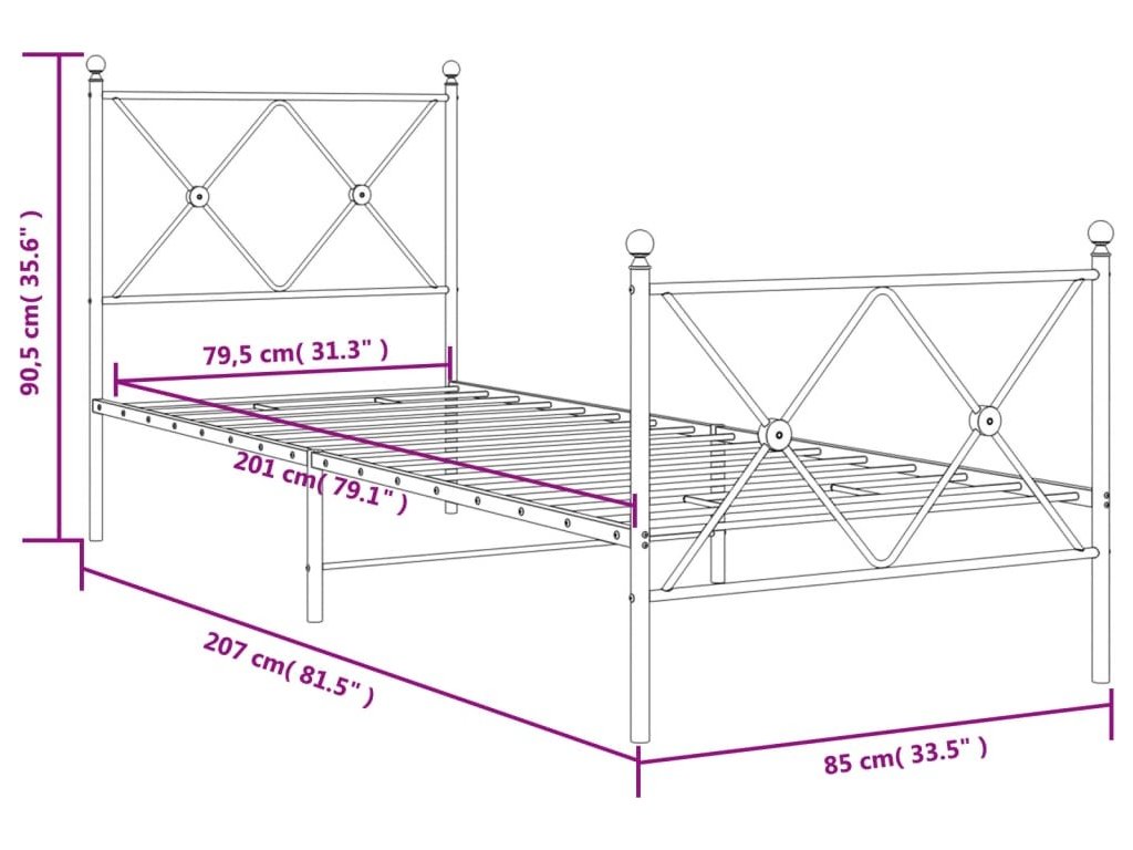 Kovový rám postele s hlavovým a nožním čelem 80 x 200 cm [376511]