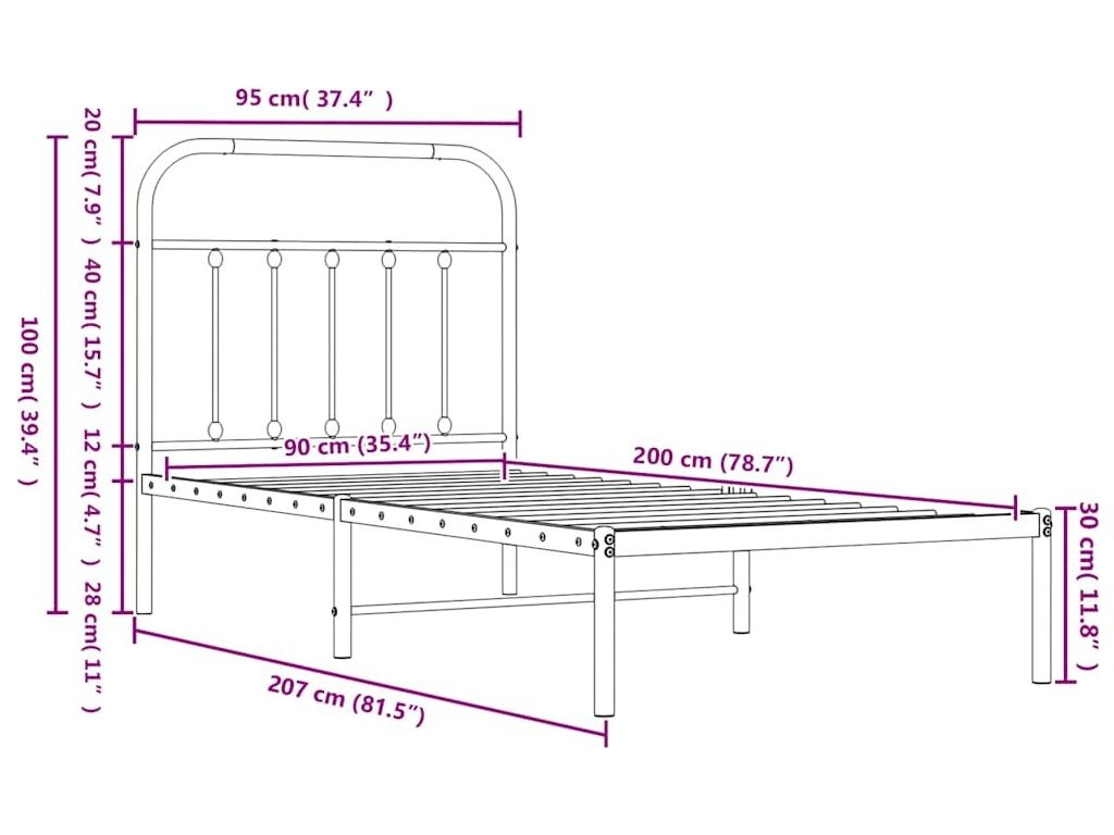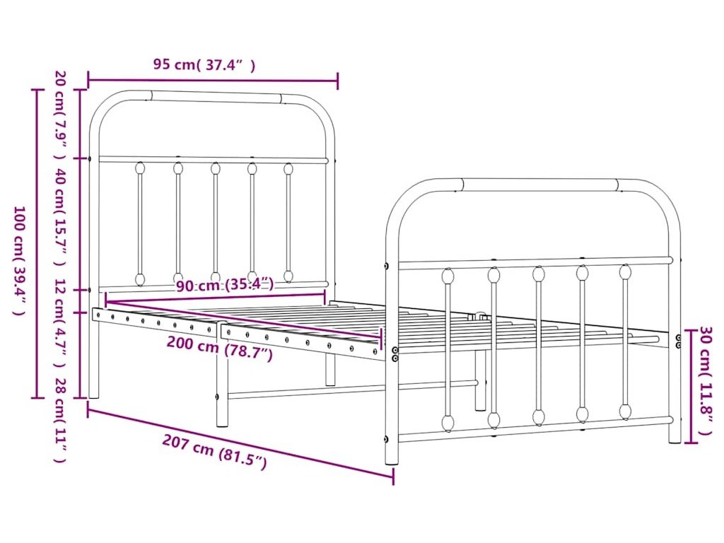 Kovový rám postele s hlavovým a nožním čelem 90 x 200 cm [352589]