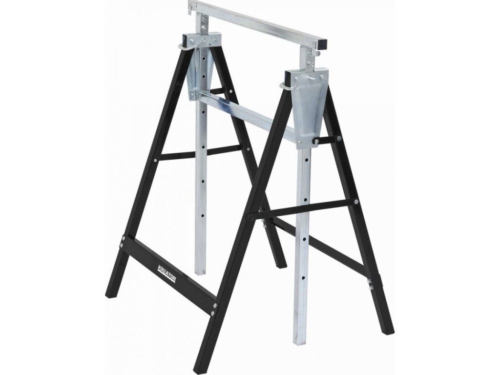Podpěrná koza Kreator KRT671003 je praktickým pomocníkem každého kutila. Skládací koza má nosnost 180 kg a pracovní výška lze nastavit s pomocí vysunovací vrchní části. Po vysunutí do požadované výšky stačí skrz otvory prostrčit zajišťovací kolíky, které jsou zavěšené na řetízcích.