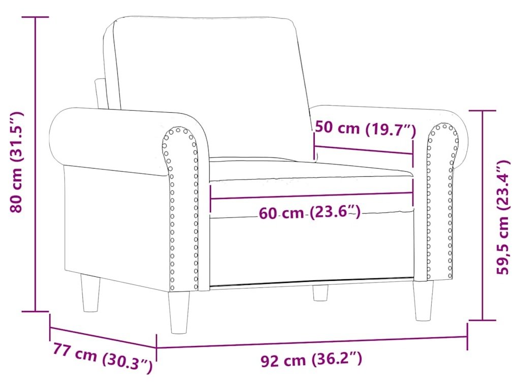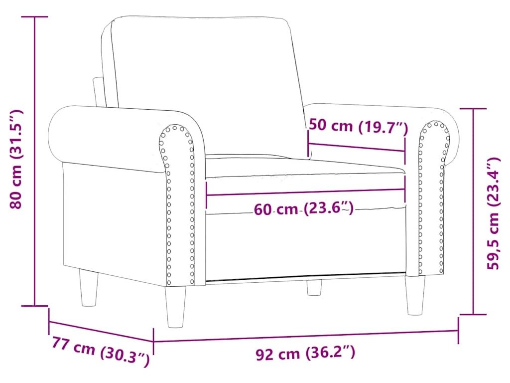 - Výška područky od země: 59,5 cm