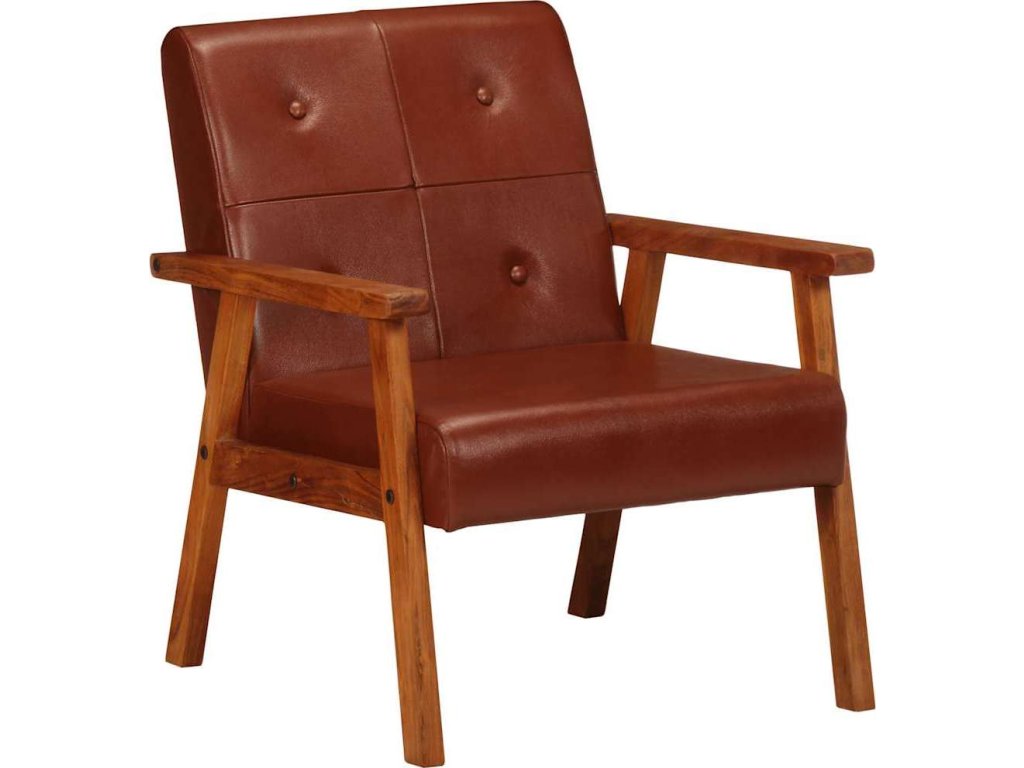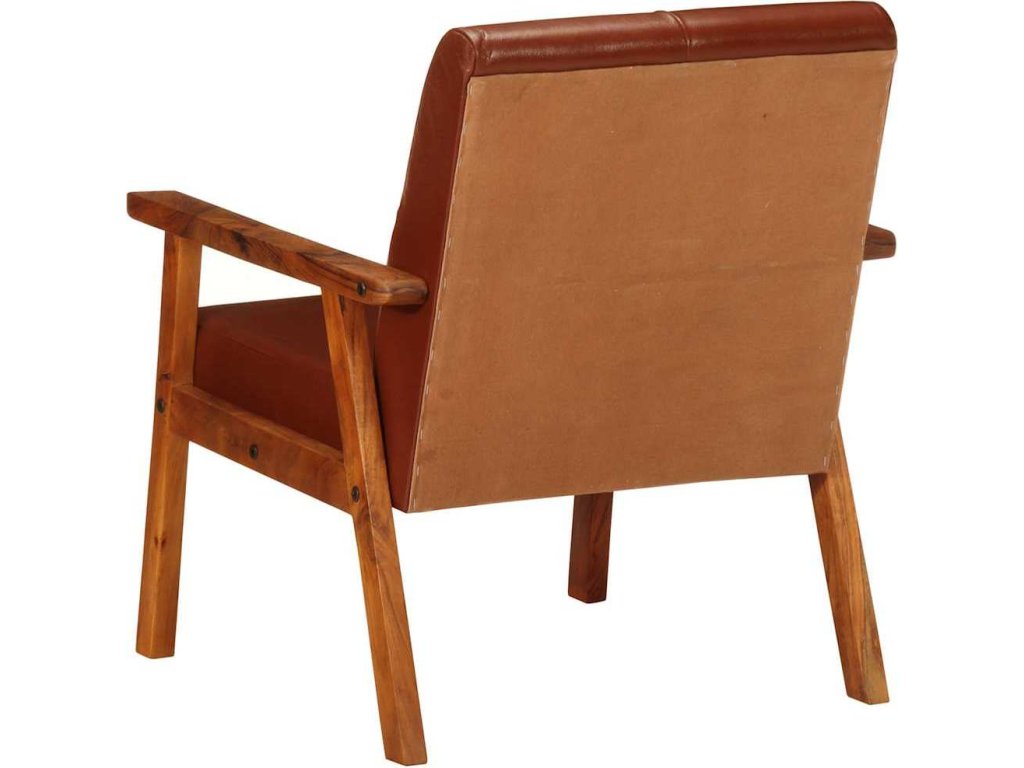 Křeslo je vyrobeno z pravé kůže, která se snadno čistí a je osázena dekorativními všívanými knoflíčky. Do každého interiéru tak vnese dojem přepychu. Silně polstrovaný sedák a opěradlo vám při sezení zajistí optimální pohodlí. Rám z masivního akáciového dřeva křeslu navíc dodává na stabilitě a odolnosti. Jedná se o dokonalé místo ke sledování filmů, čtení knížky nebo jen tak k odpočinku! Sestavení křesla je jednoduché.