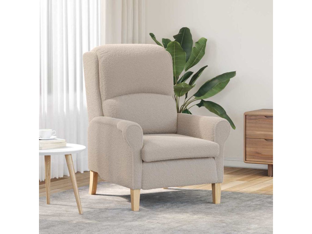 - Kvalitní materiály: S měkkou tkaninou Sherpa je to křeslo pohodlné a teplé. Tkanina vypadá velmi příjemně a dodává interiéru útulnost. Uvnitř je rám z inženýrského dřeva, který zajišťuje stabilitu a odolnost křesla, takže si zachovává svůj elegantní tvar po dlouhou dobu.
