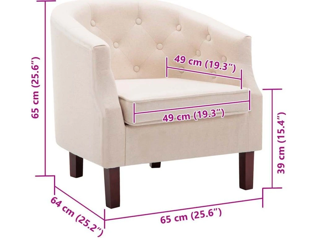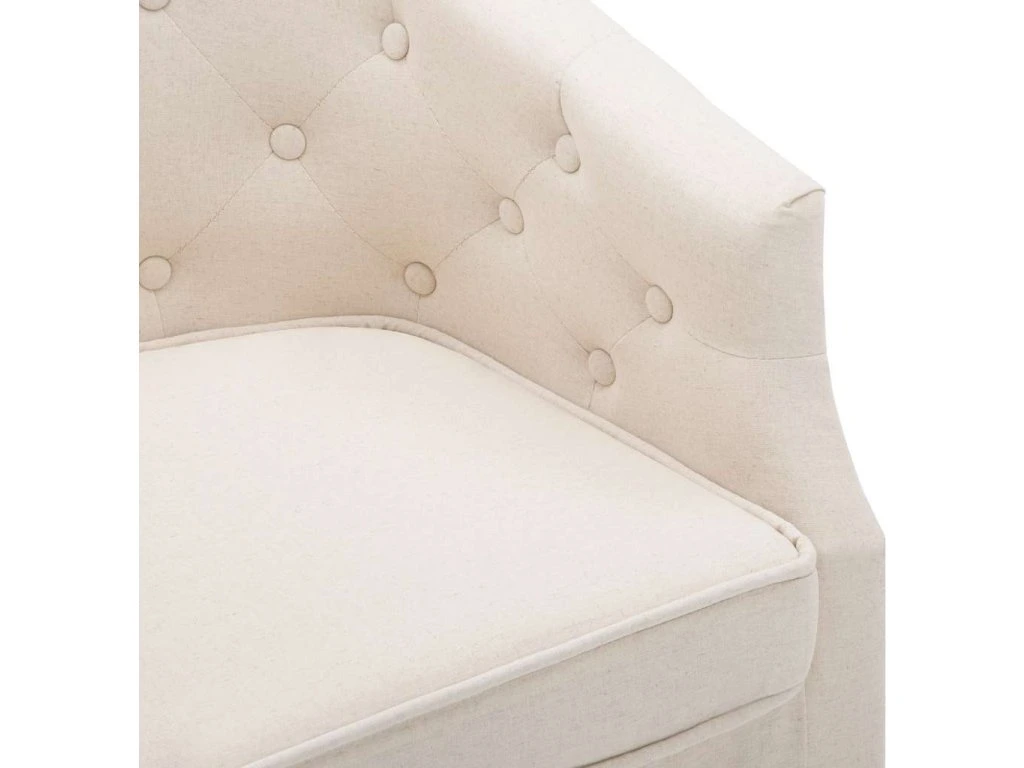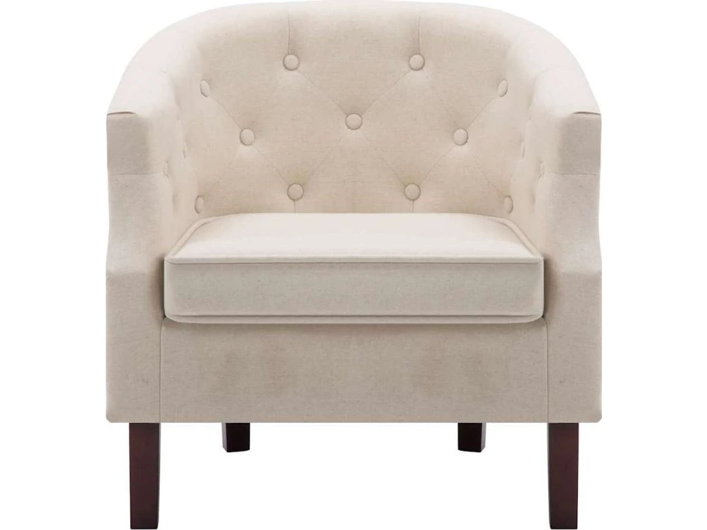 Toto křeslo dodá vašemu interiéru dotek luxusu, úrovně a stylu. Díky pevným dřevěným nohám je toto sofa křeslo stabilní a odolné. Je čalouněné vysoce kvalitní polyesterovou tkaninou a polstrované silným molitanem, takže vám umožní užívat si při sezení optimálního pohodlí. Všívané knoflíčky a ladně zaoblené područky dodávají křeslu sofistikovaný vzhled. Je ideálním místem ke sledování filmů, čtení knihy nebo jen tak k odpočinku!