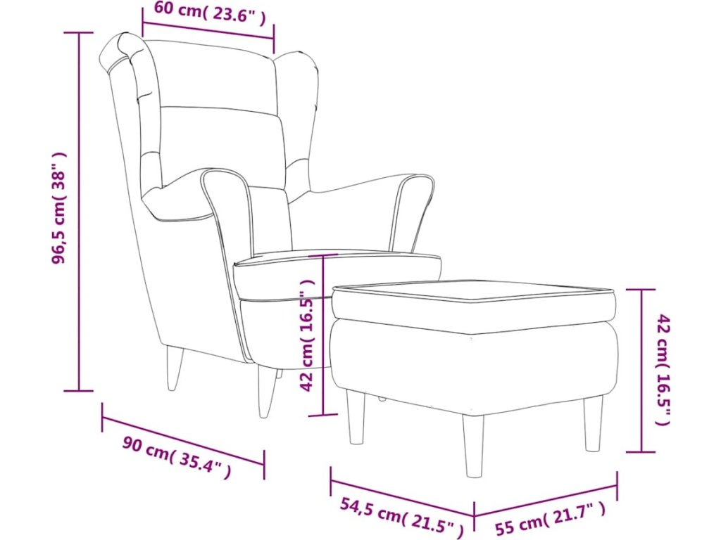 - Robustní a stabilní rám: Toto relaxační křeslo se stoličkou podepírá rám z překližky a dřevěné nohy, a proto je pevné a stabilní.