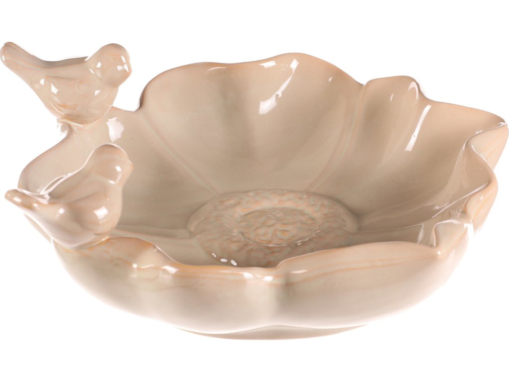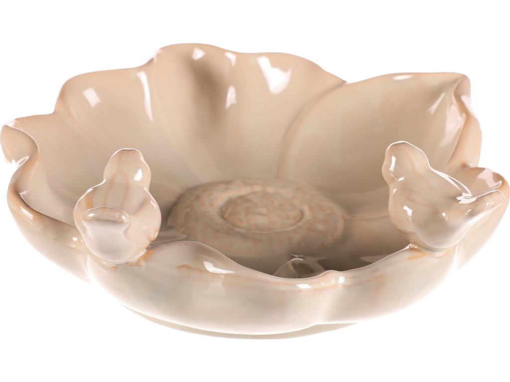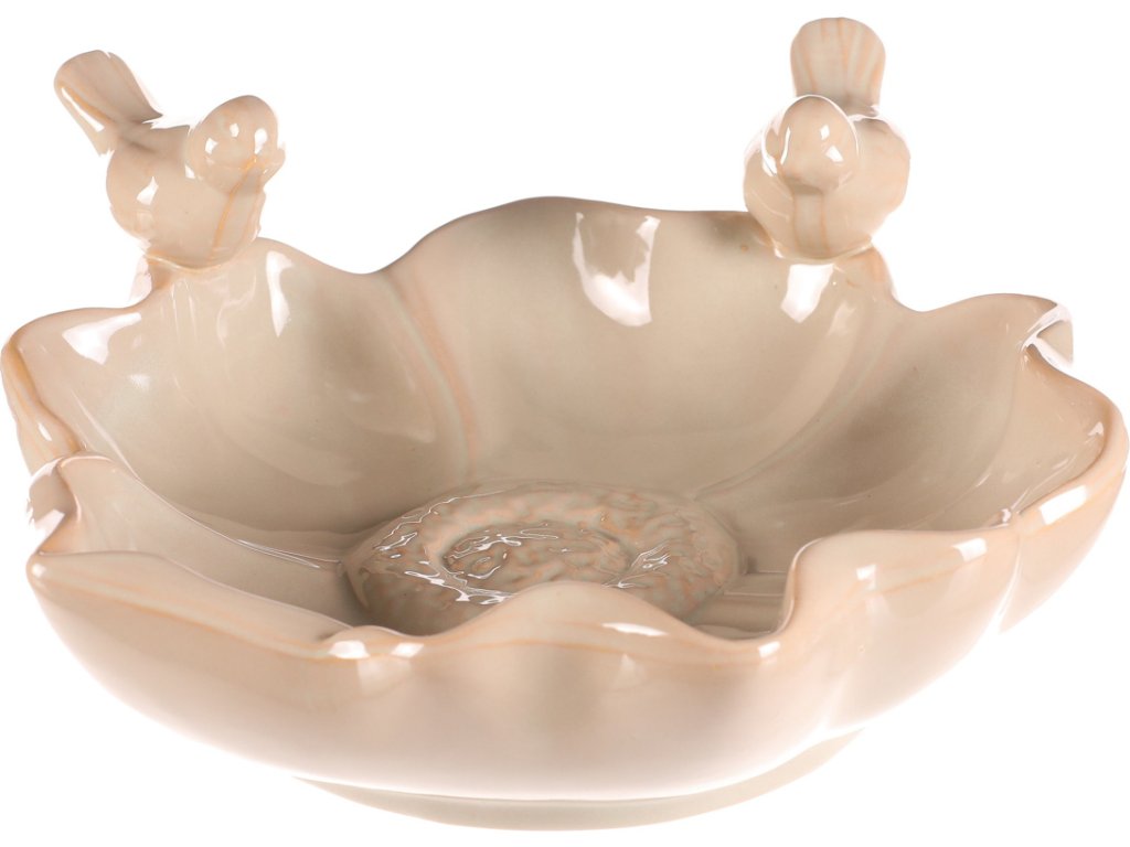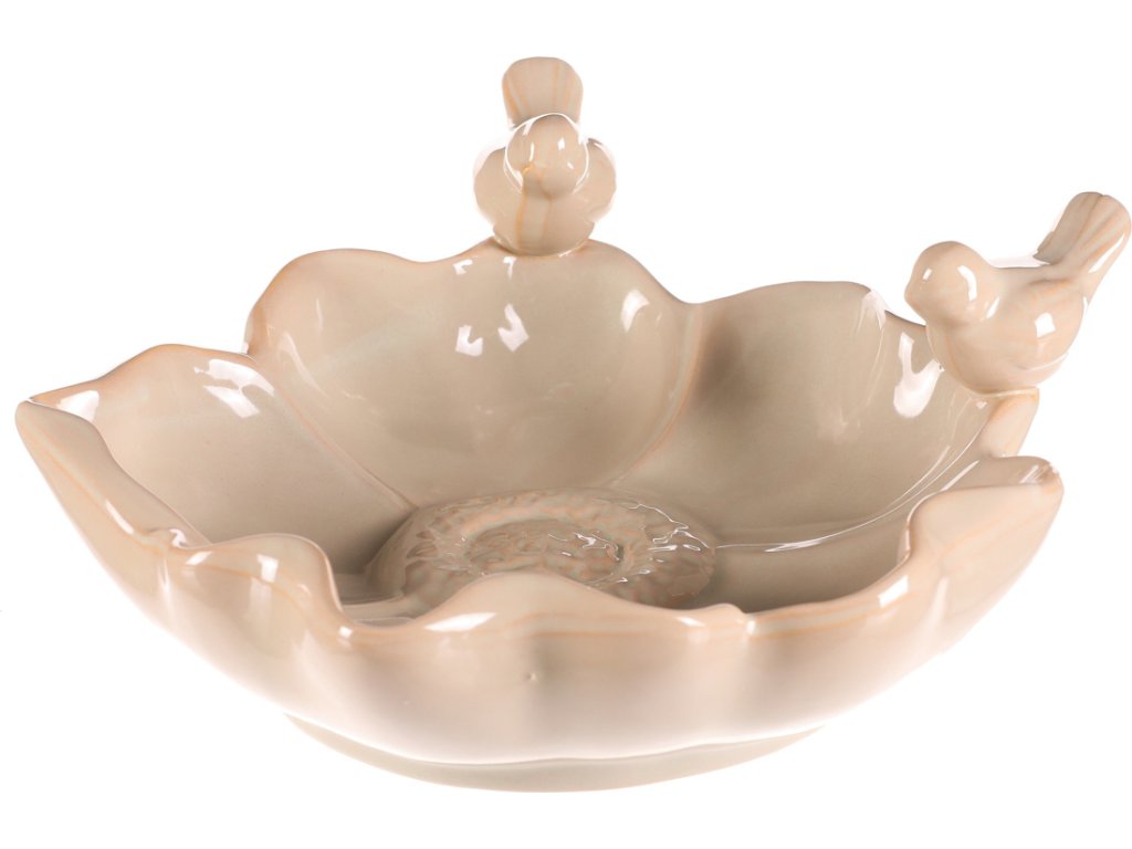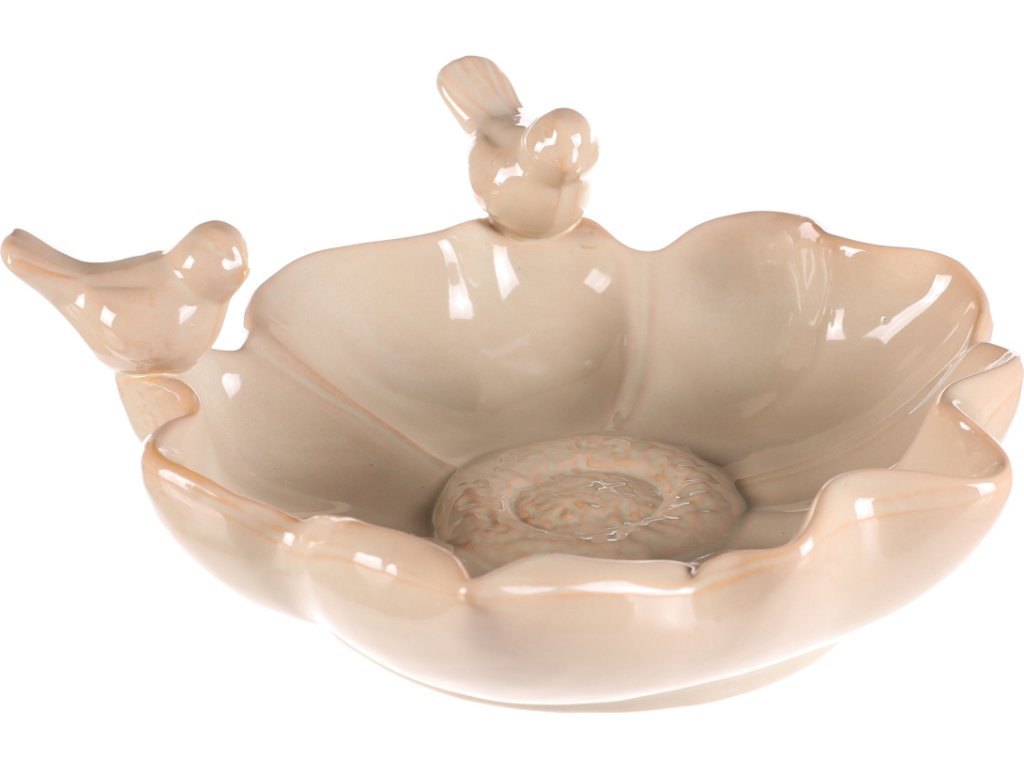 Krmítko/pítko - keramické, květ s ptáčky, krémové KEX6005 CRM-L