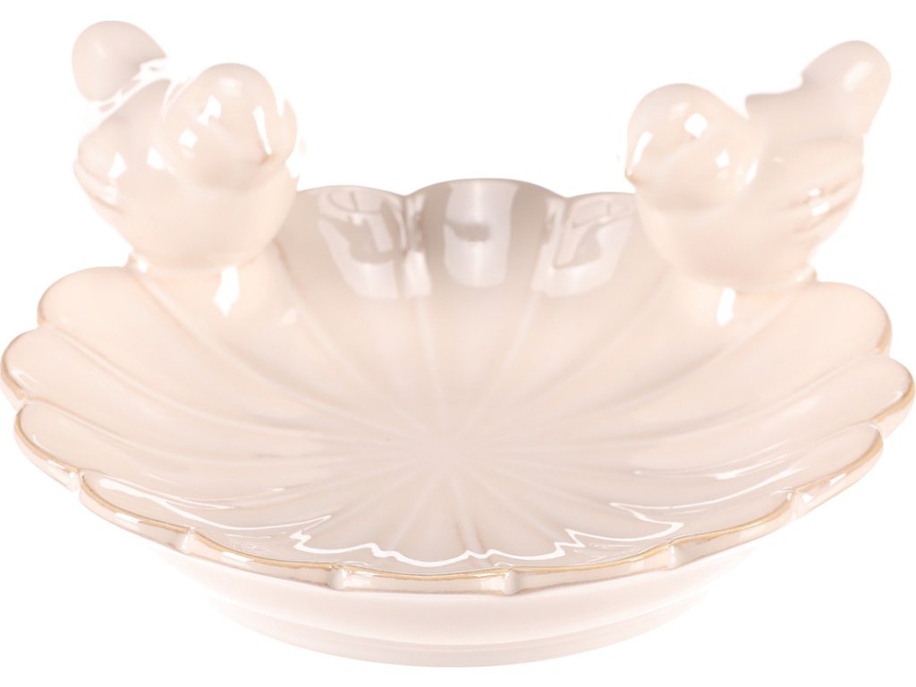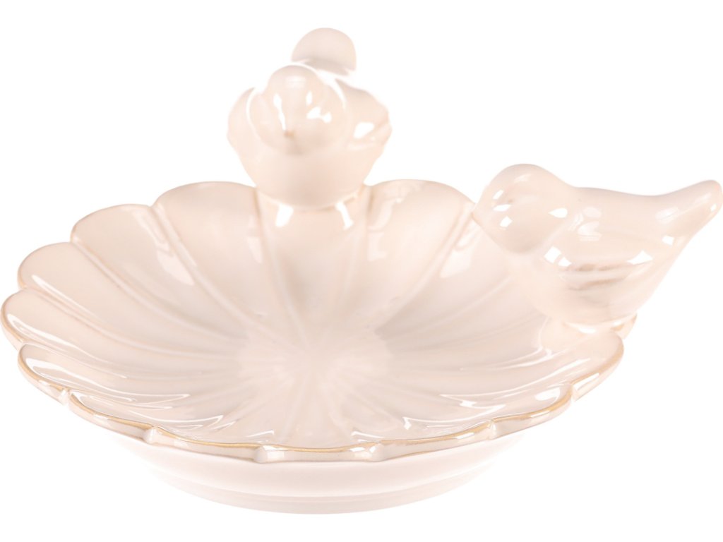 Krmítko/pítko - keramické, pravidelný květ s ptáčky, bílé KEX6006 WT-S