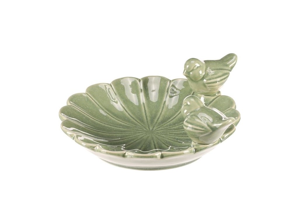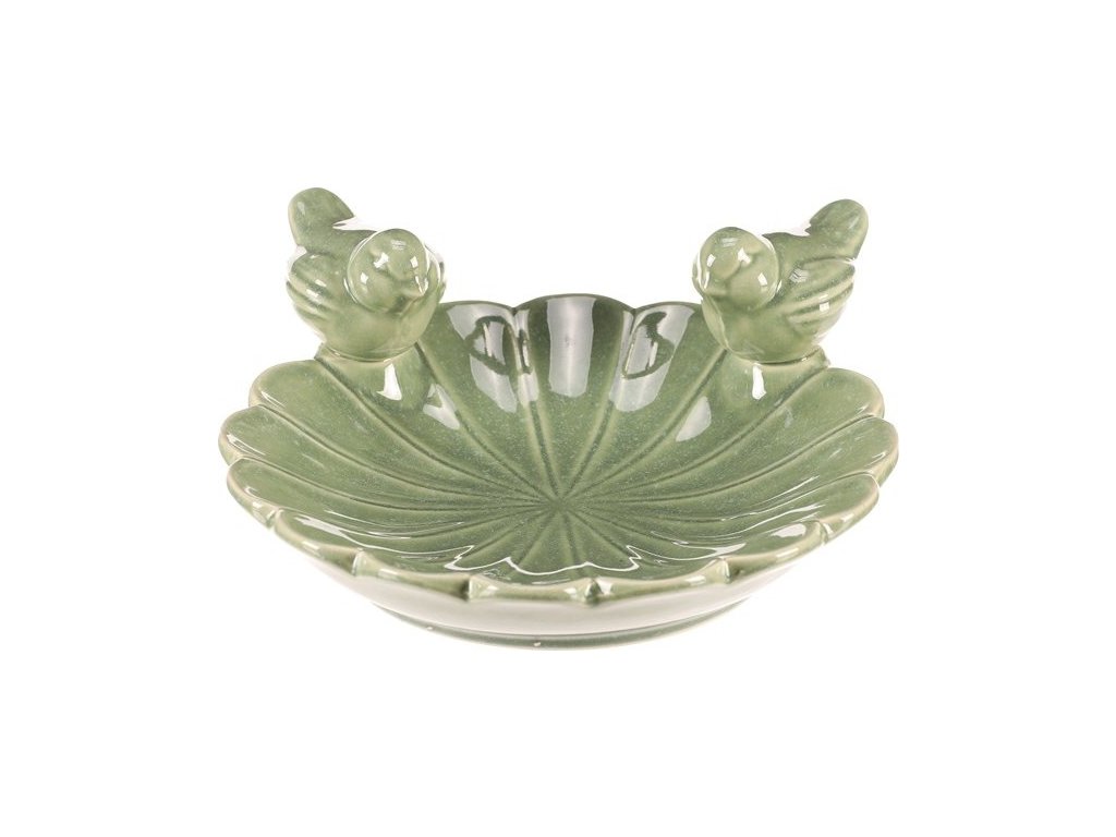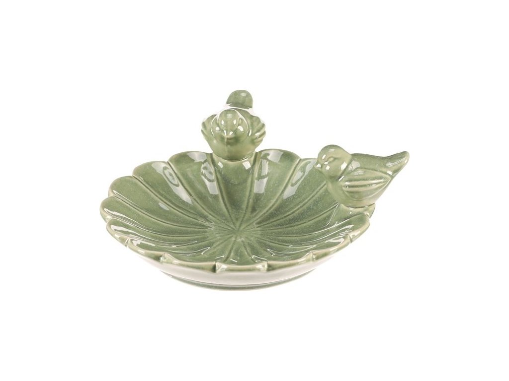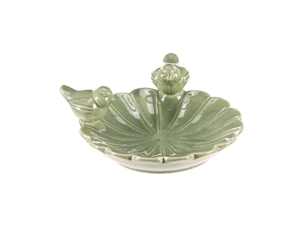 Krmítko/pítko - keramické, pravidelný květ s ptáčky, zelené KEX6006 GRN-L