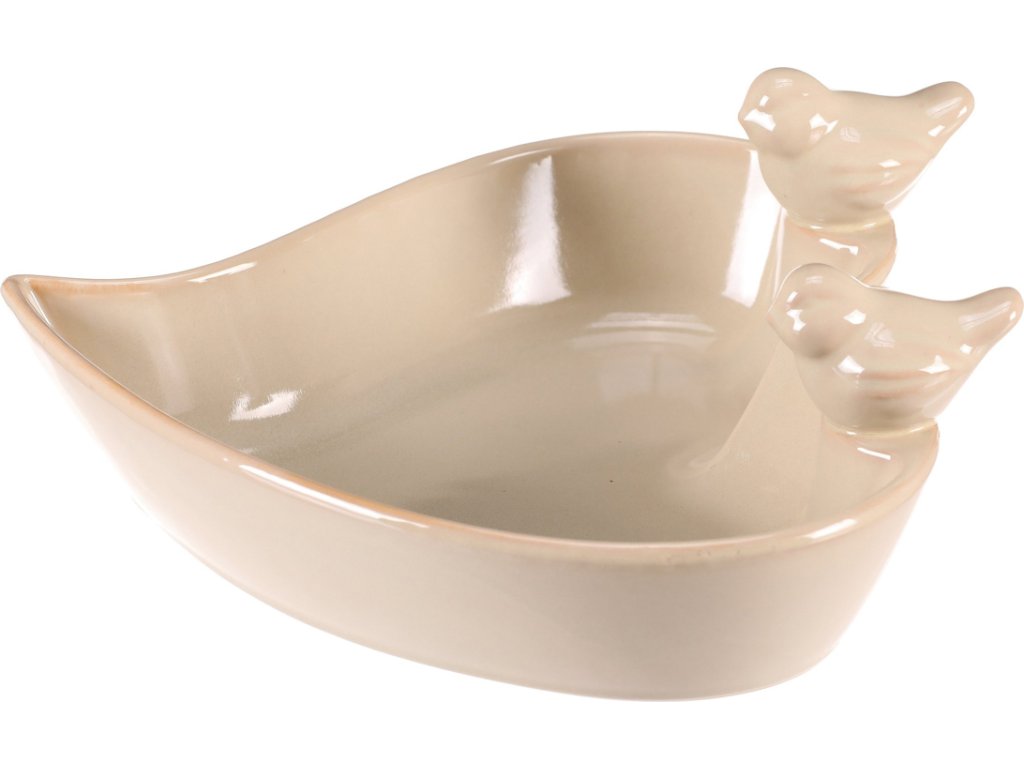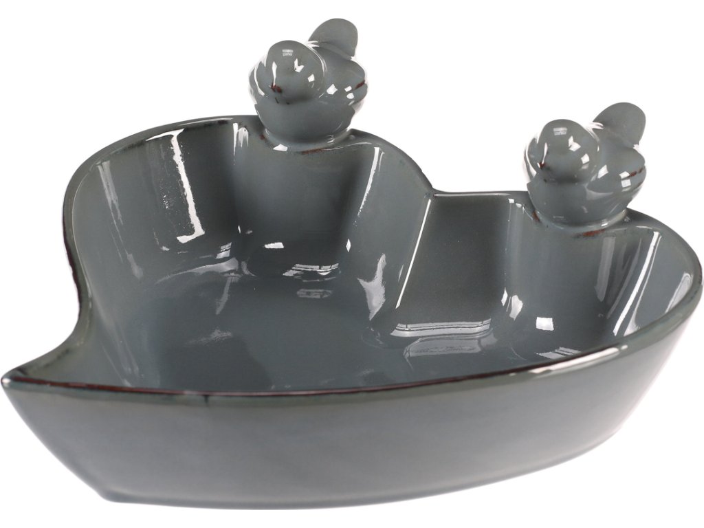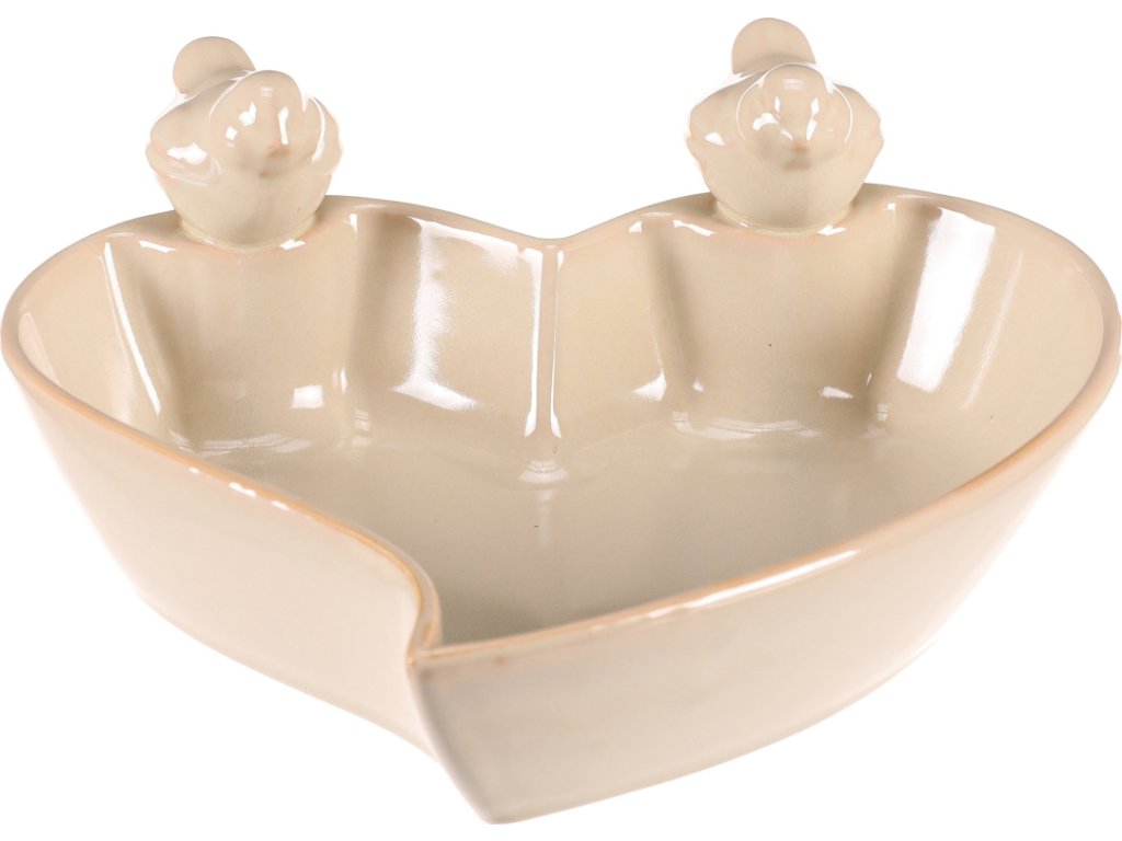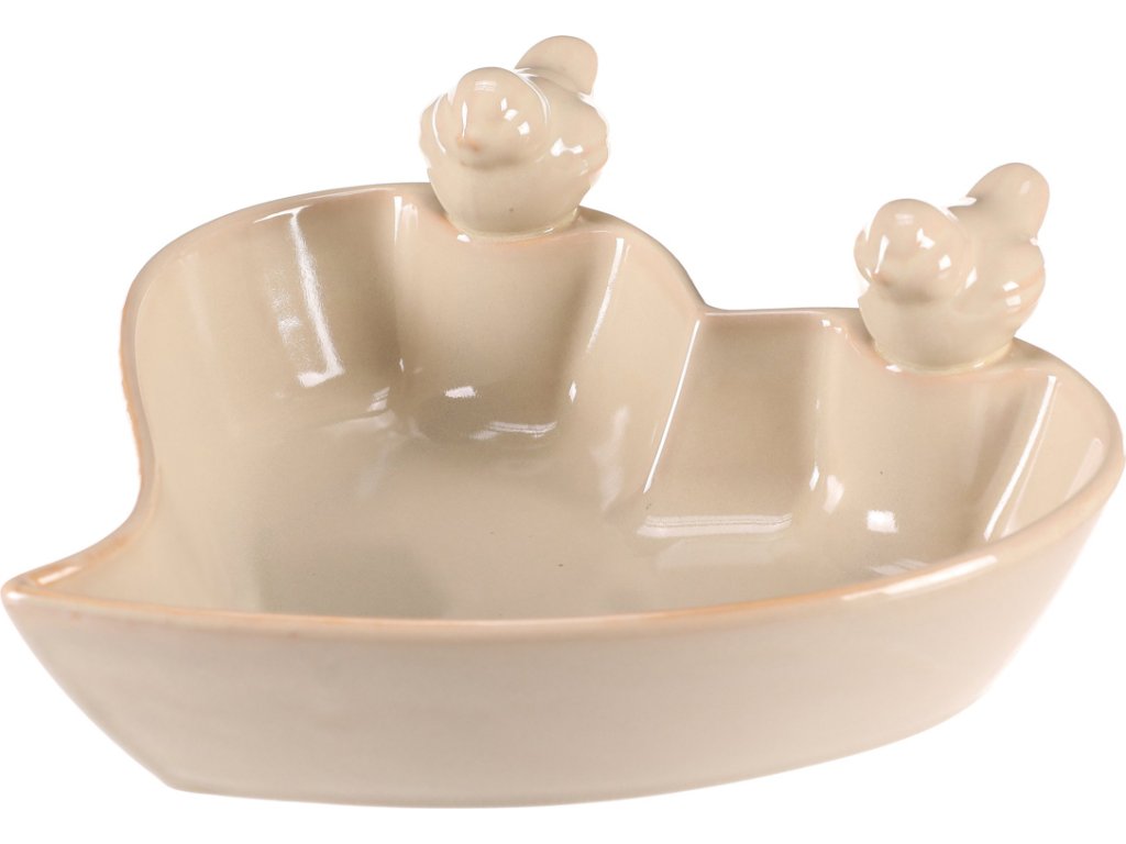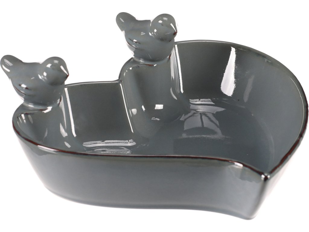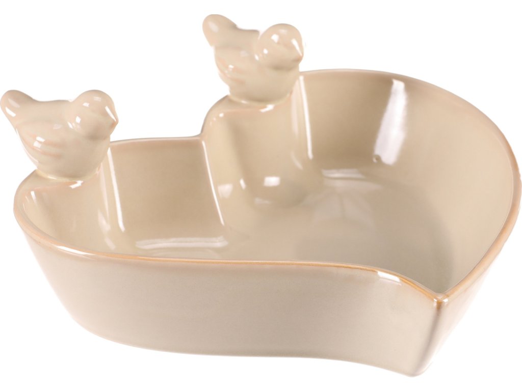 Krmítko/pítko - keramické, srdce s ptáčky, krémové KEX6008 GREY