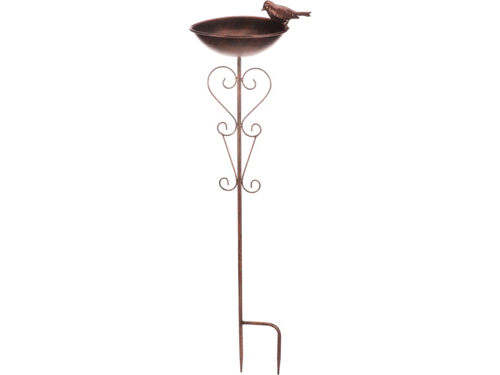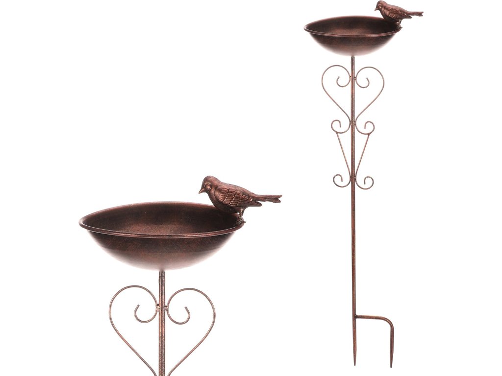 Krmítko/pítko - kovový zápich, miska s ptáčkem, měděné UM0822 COP-ANT