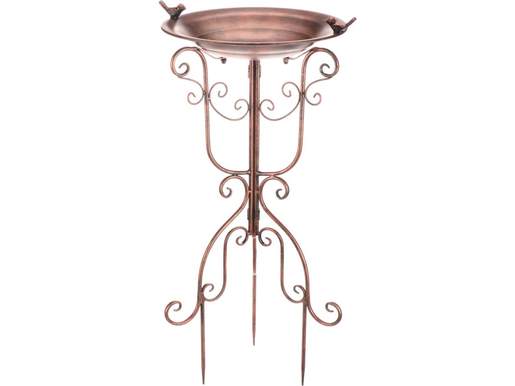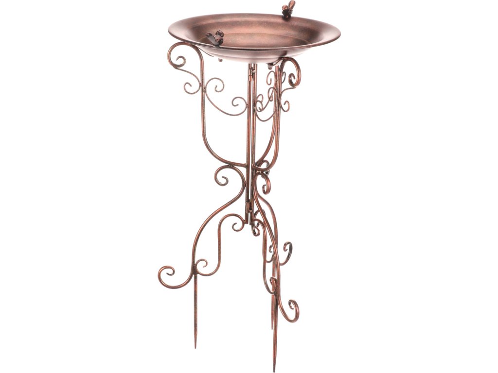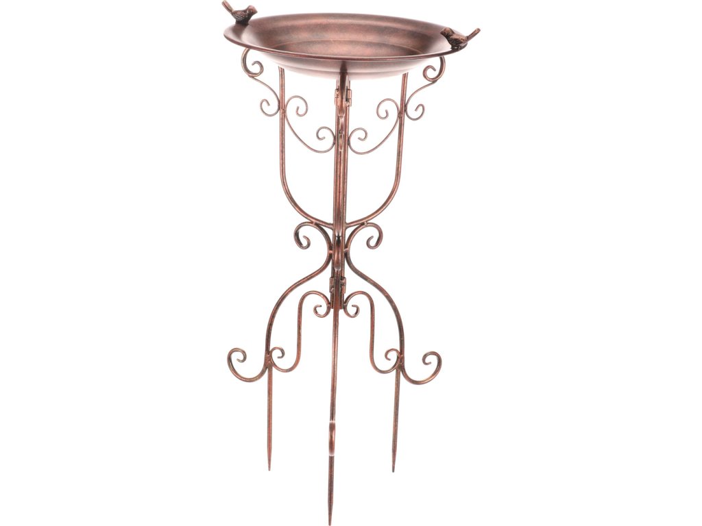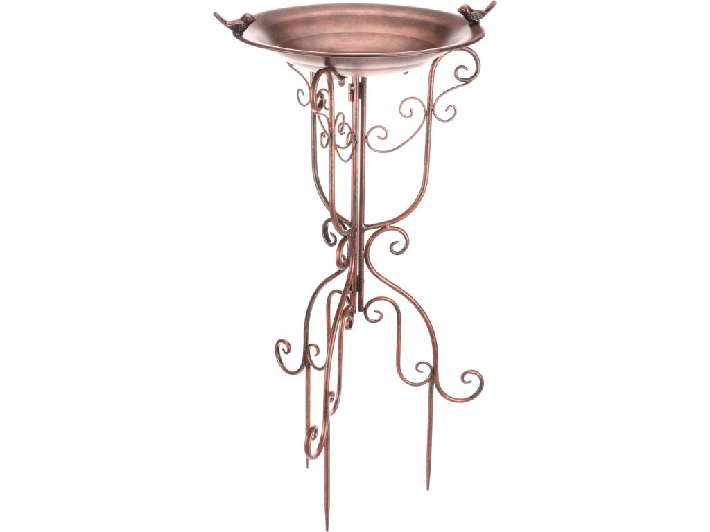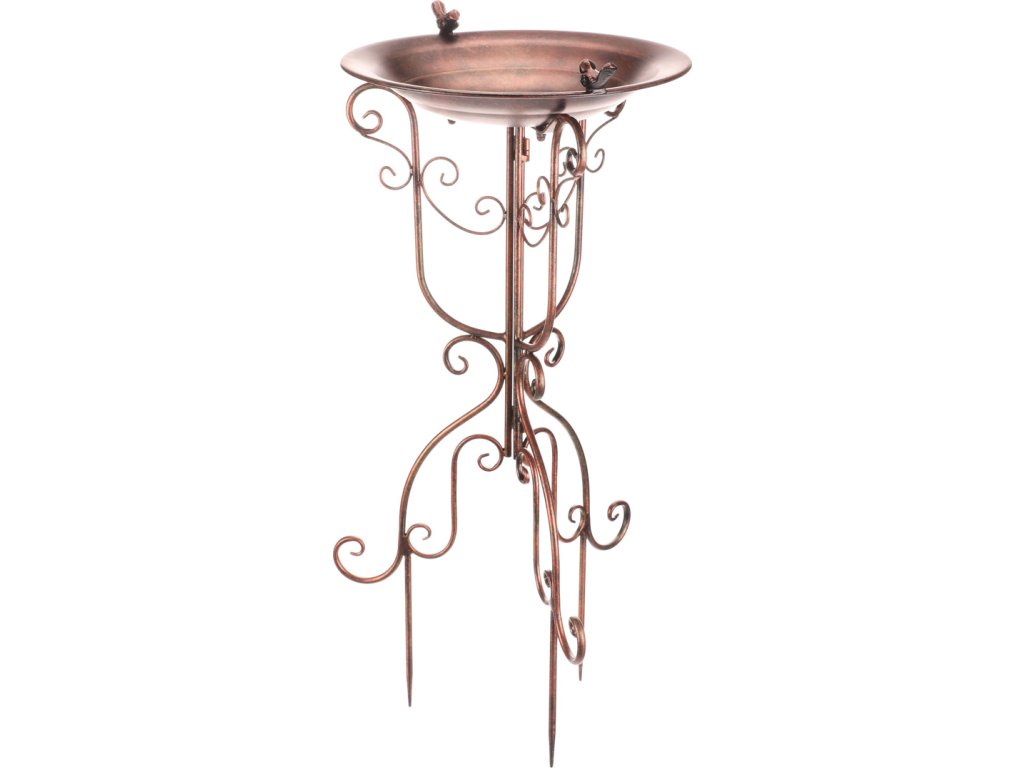 Krmítko/pítko - kovový zápich, trojnožka, s ptáčky, barva měděná UM1055-S