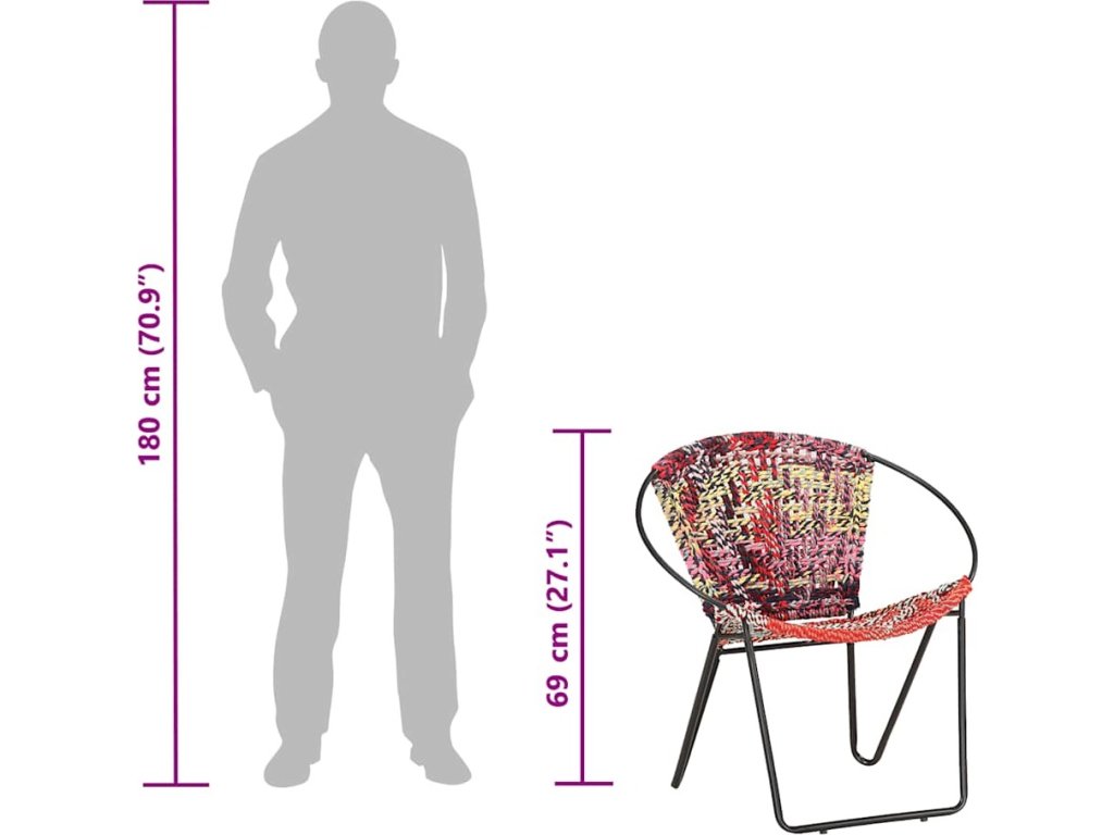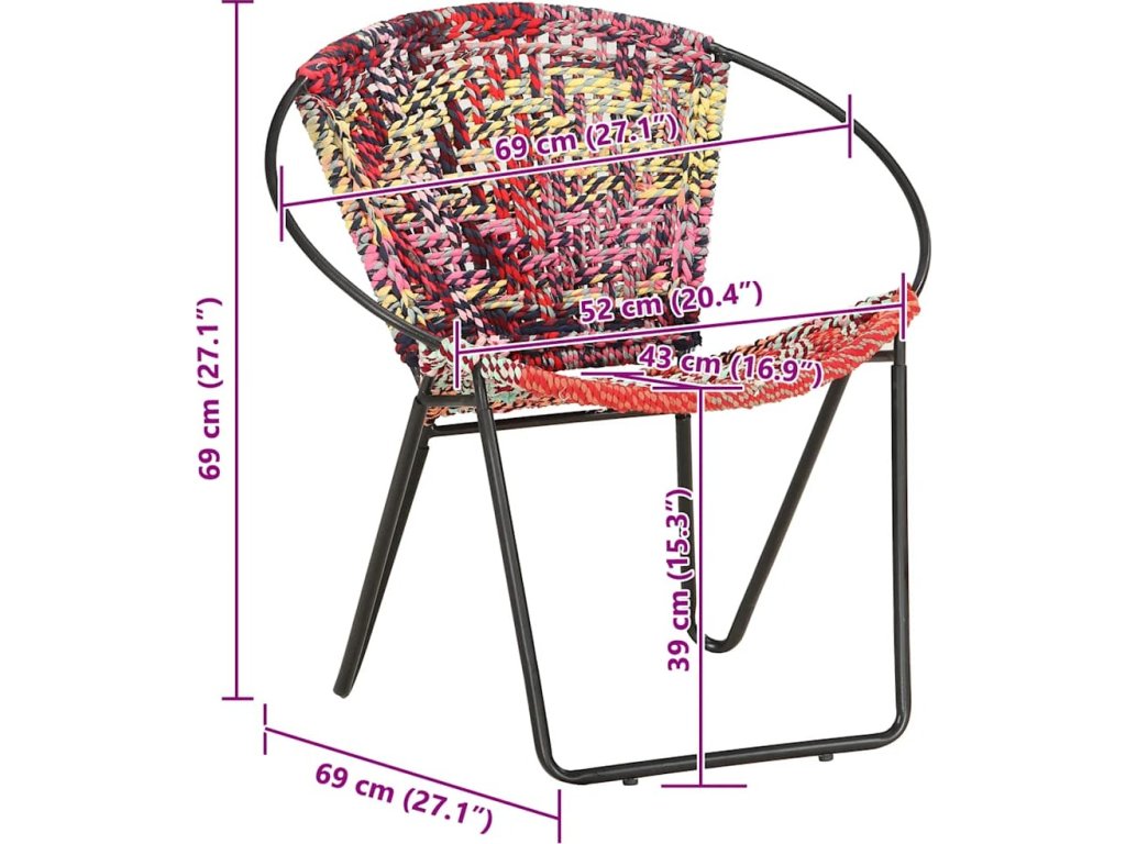 - Materiál: chindi textil (100% bavlna), ocel s práškovým nástřikem