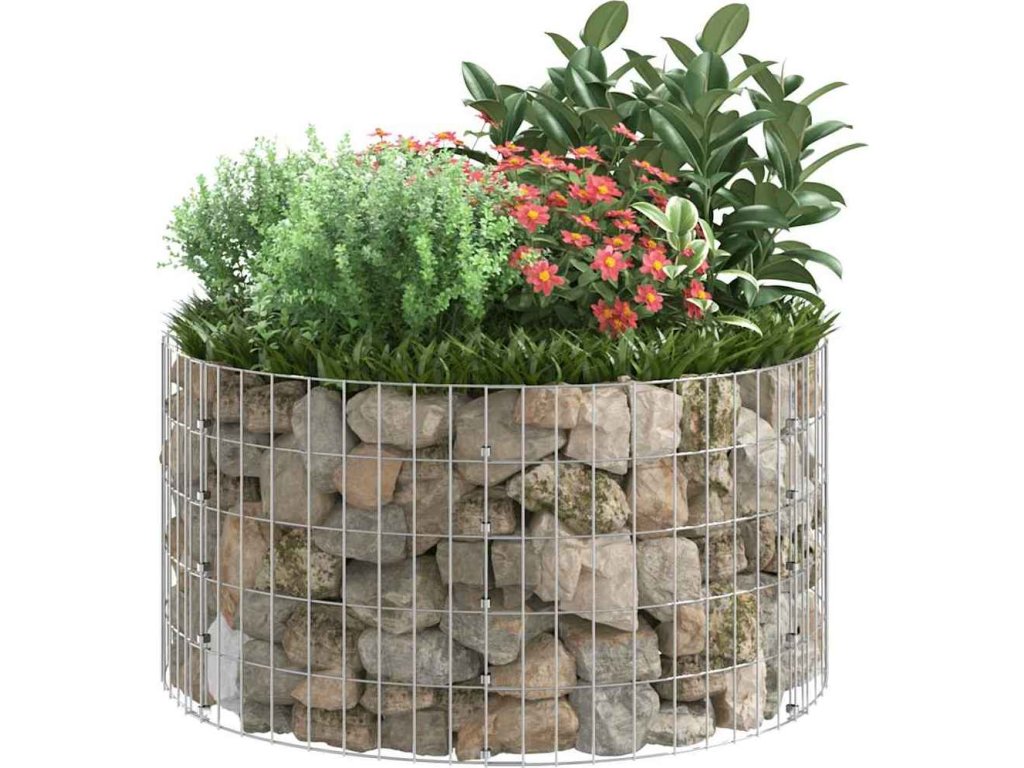 Tento kruhový gabionový sloupek představuje praktický způsob, jak vytvořit pevný okraj pro rostliny na vaší zahradě a terase.