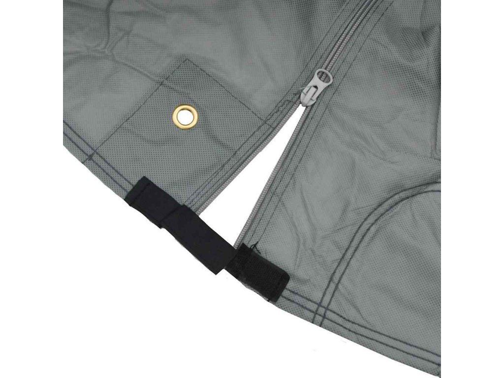 - Větruodolná konstrukce: Pružné lemy potahu zajišťují, že se dobře přizpůsobí vašemu vozu, zatímco nastavitelné popruhy s přezkami ve spodní, přední a zadní části jej udrží na místě i ve větrných dnech. Kryt má také zapínání na suchý zip podél zipů pro bezpečné uchycení.