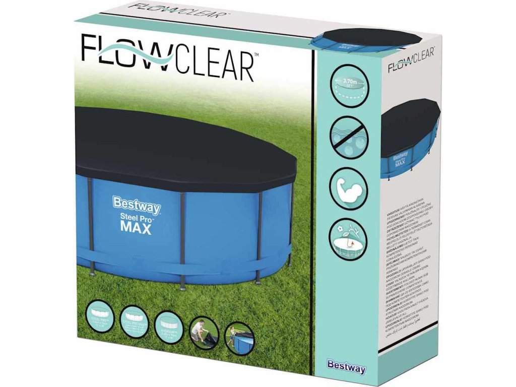 Kryt na bazén Bestway Flowclear zabrání nečistotám, listí a odpadkům, aby se dostaly do vašeho bazénu. Předchází také růstu řas a snižuje spotřebu nákladných chemikálií, pokud bazén zrovna nepoužíváte.
