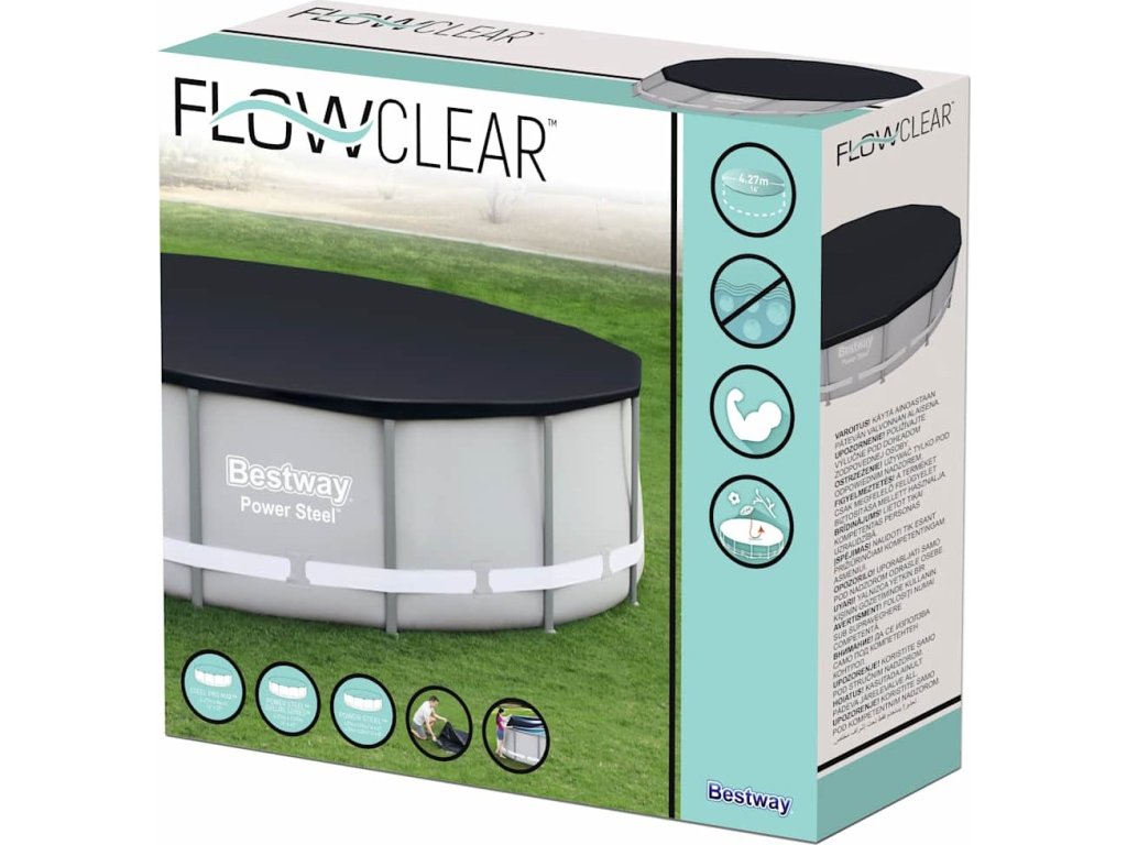 Kryt na bazén Bestway Flowclear zabrání nečistotám, listí a odpadkům, aby se dostaly do vašeho bazénu. Předchází také růstu řas a snižuje spotřebu nákladných chemikálií, pokud bazén zrovna nepoužíváte.