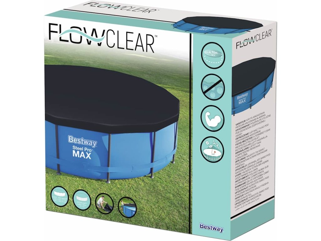 Kryt na bazén Bestway Flowclear zabrání nečistotám, listí a odpadkům, aby se dostaly do vašeho bazénu. Předchází také růstu řas a snižuje spotřebu nákladných chemikálií, pokud bazén zrovna nepoužíváte.