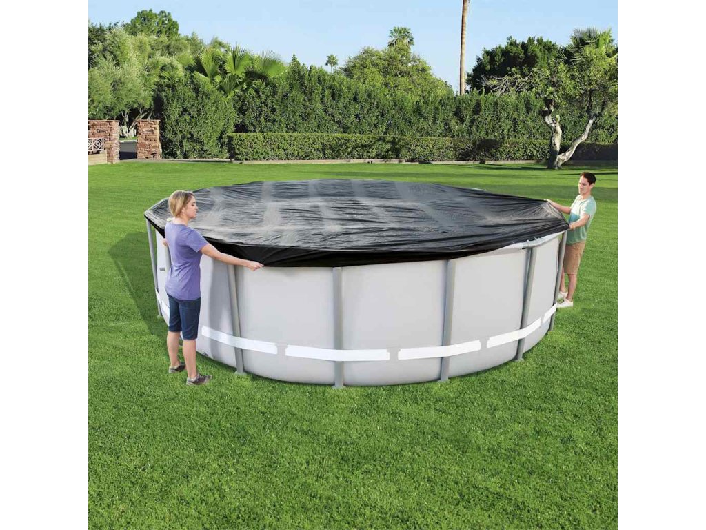 Kryt na bazén Bestway Flowclear zabrání nečistotám, listí a odpadkům, aby se dostaly do vašeho bazénu. Předchází také růstu řas a snižuje spotřebu nákladných chemikálií, pokud bazén zrovna nepoužíváte.